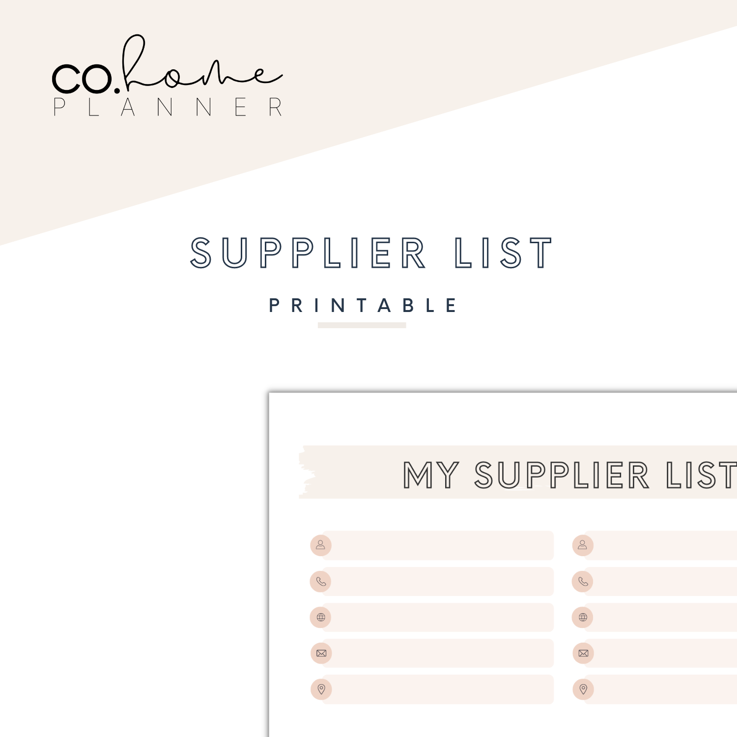 This printable A4 sheet allows you to keep your supplier contacts easy to access inside your co home planner.