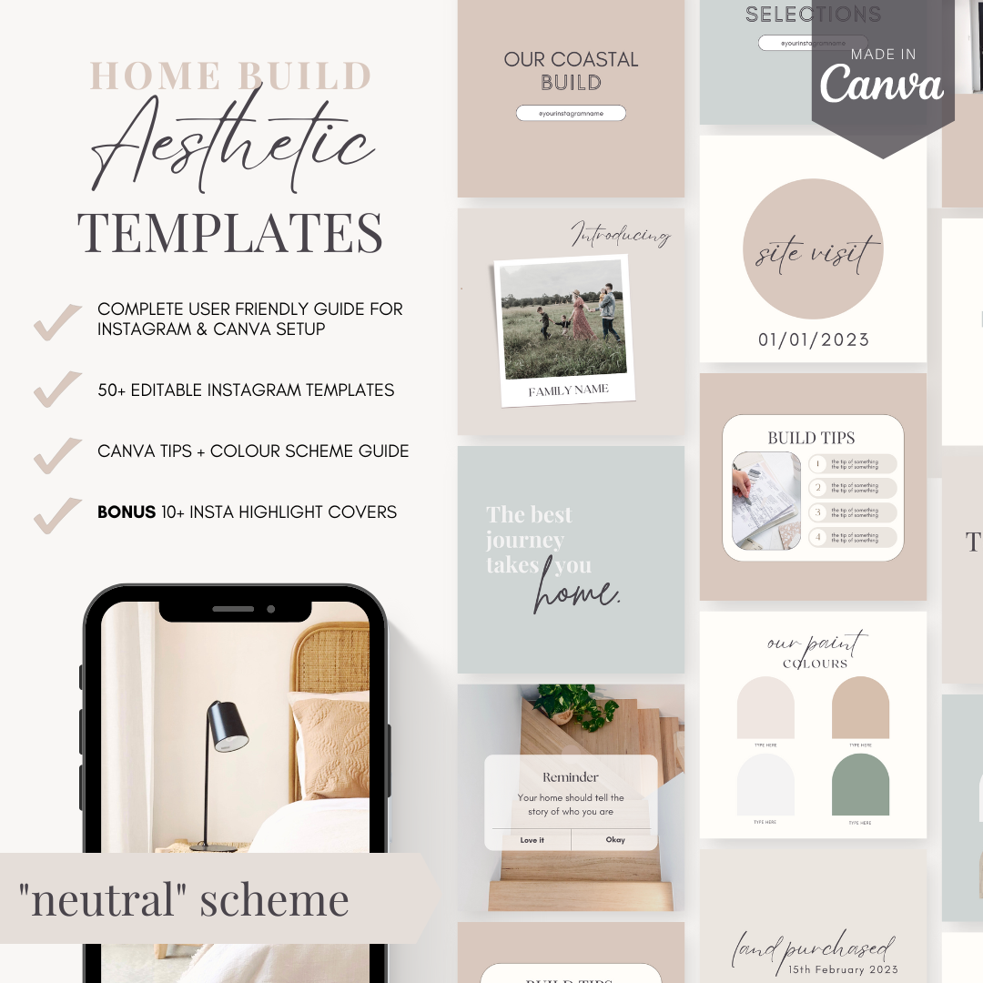 Neutral Scheme | Home Build Canva Templates + Instagram guide