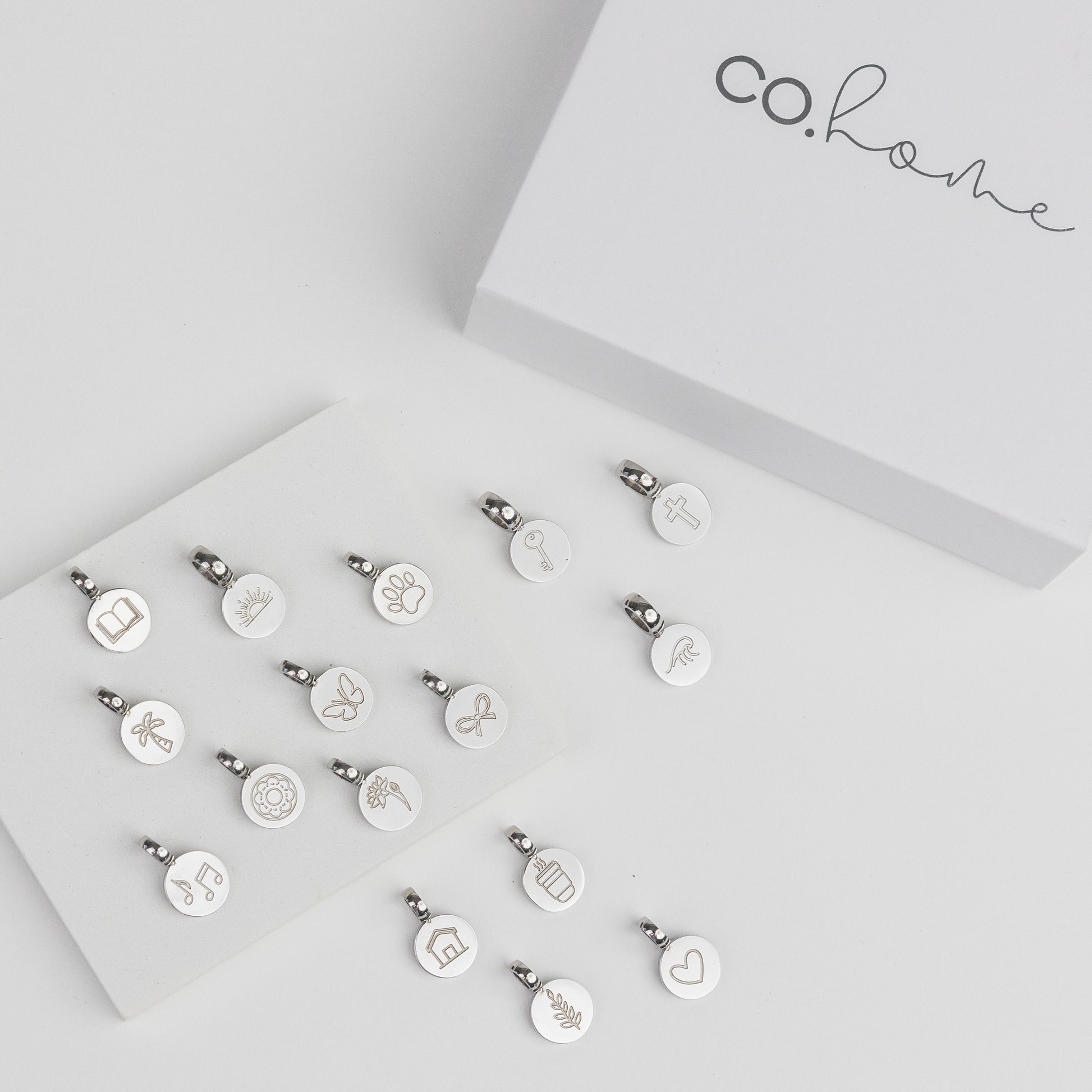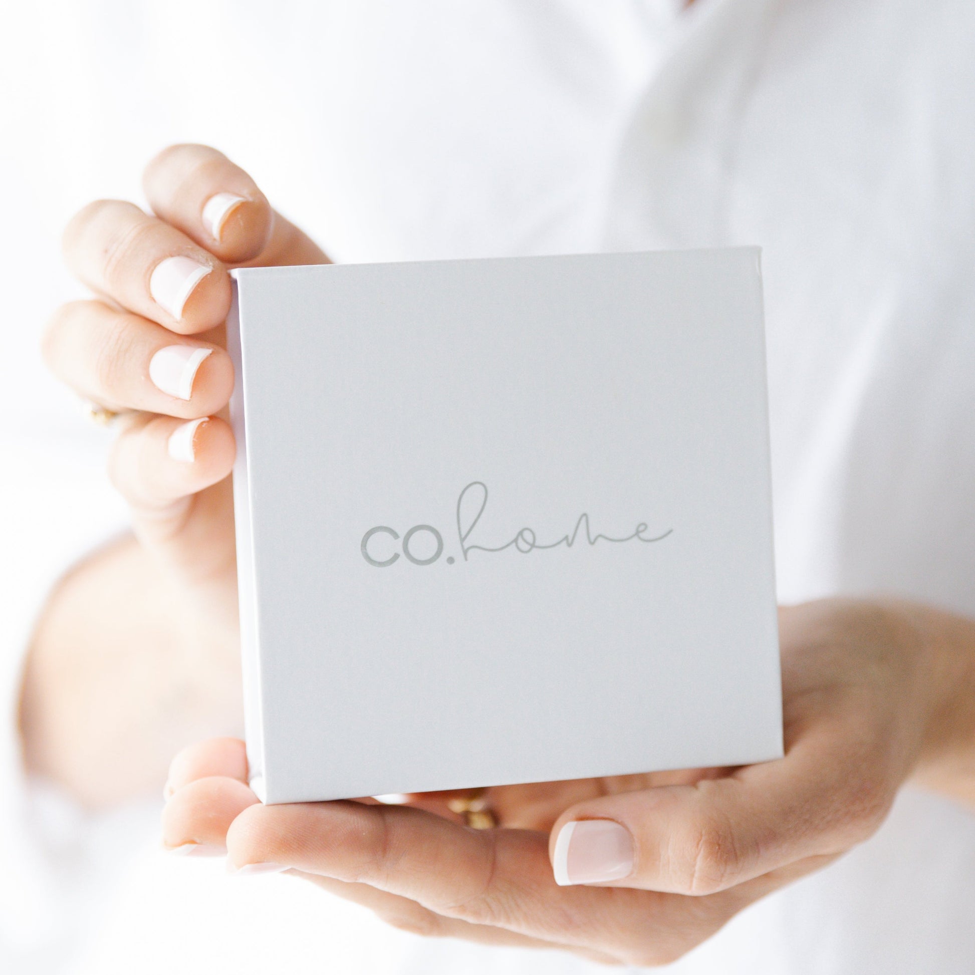 - Stainless steel loop featuring a laser-engraved "Co Home" logo