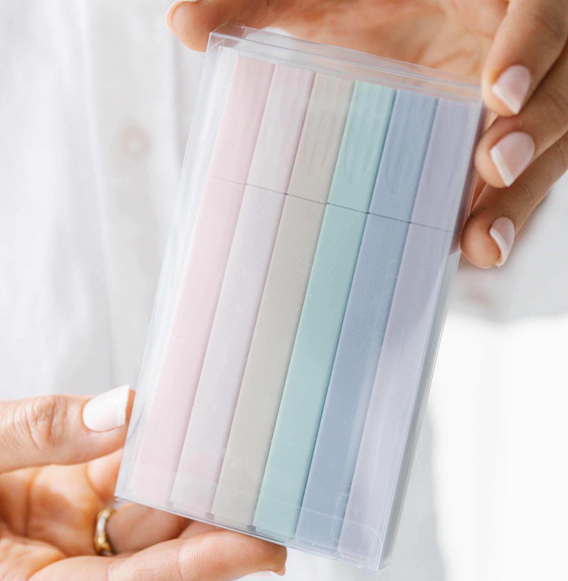 - Sleek plastic case with soft chisel tips for smooth writing