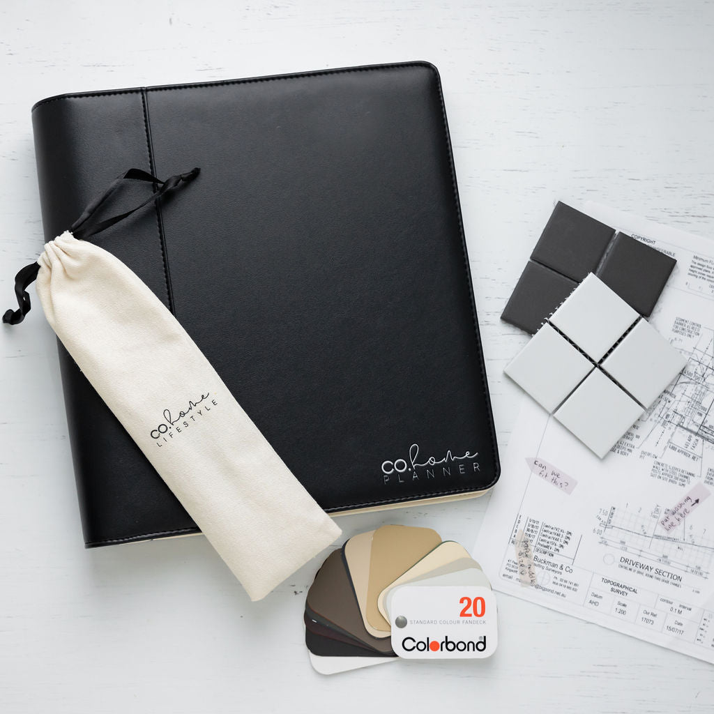I love the Ultimate bundle by Co Home Planner as it keeps all my contacts, inspo and samples together from all our suppliers we deal with before, during and after our builds. I really love how everything has it's place, and is easily accessible in a succinct and organised way. Contains lots of compartments so building/supplier meetings are an ease. The carry tote is a fabulous accompaniment to the folder/binder, as I can fit my laptop, keys, samples and other essentials all in one place while I shop and research my building materials on the run. Definitely a key essential item for the modern and fashionable building enthusiast.